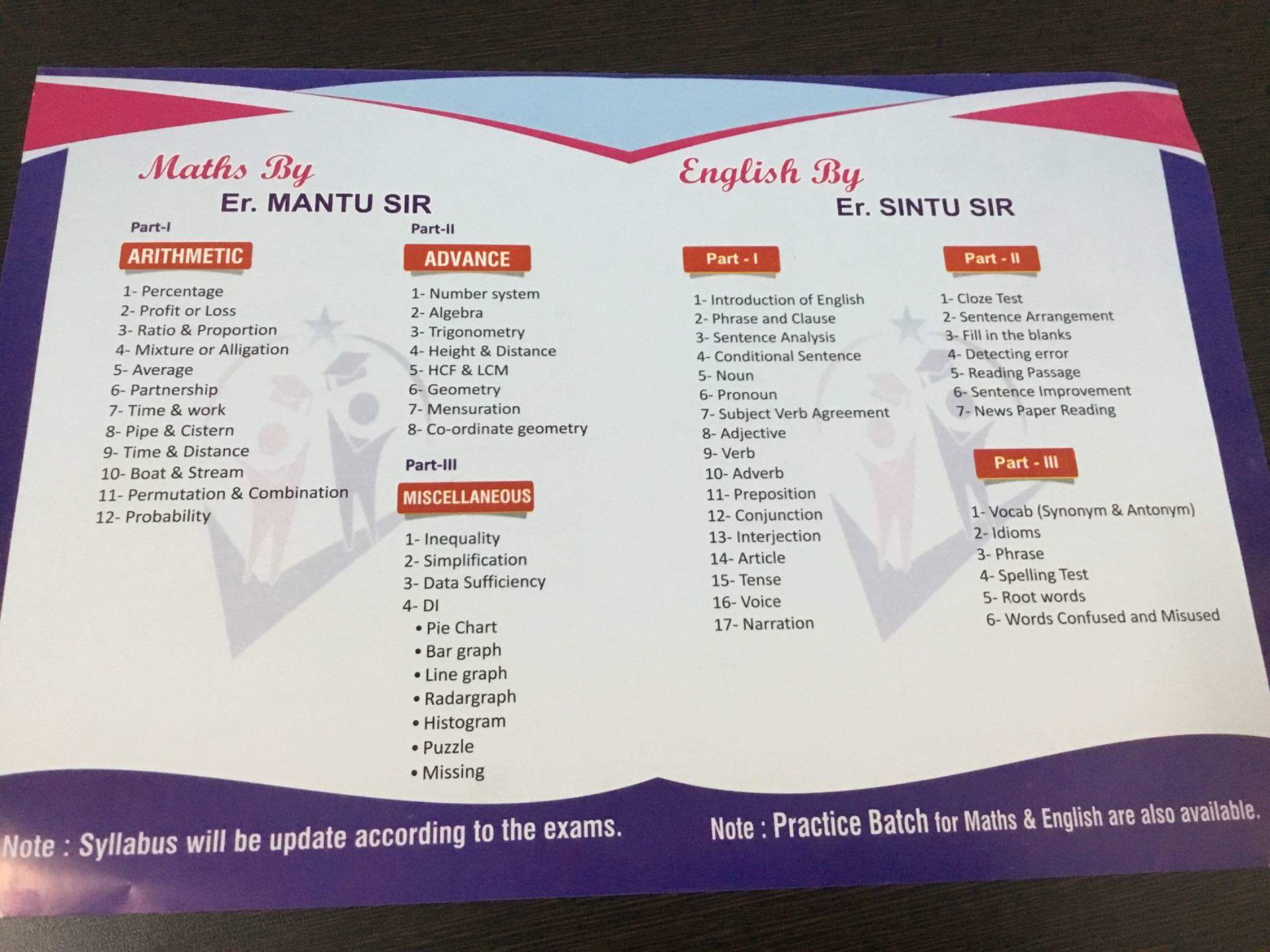 COURSES : SSC , BANK , TET/CTET , RAILWAY / LEKHPAL ,